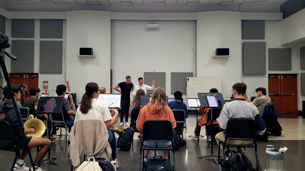 The final visit was to the Butler School of Music at the University of Texas, Austin. Dr Stephen Page has an excellent saxophone studio and I was able to see a number of them perform at teaching assistant Marina Sakellakis’ final DMA recital. Although the wind symphony was not rehearsing, I was able to sit in on a graduate conducting lab with Marc Sosnowchik. The students had prepared Strauss’ Suite in Bb Major for chamber winds and worked with Sosnowchik on style shaping with gesture. They had time to give sections a couple goes, not aiming for perfection today but wanting to unlock certain things that can be further developed in conjunction with looking back over the video footage. Each student needed to be able to articulate what they are trying to achieve at any point in the piece and work on refining their movement to give a concise and effective gesture. I appreciated how they got out of their comfort zone and embraced the new concepts to grow as well as how the players were able to give helpful feedback on what is working for them.