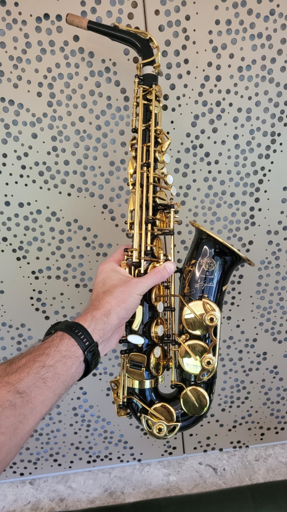 It was then onto the alto saxophones. The Axos is marketed as a premium instrument for students, not quite at the level of a Yamaha 62 but a solid intermediate horn. There was plenty of projection and comfortable ergonomics. The case is an economical version of the Lite case without two of the pockets and the shoulder straps position has changed which made it much less comfortable to wear as a backpack.
